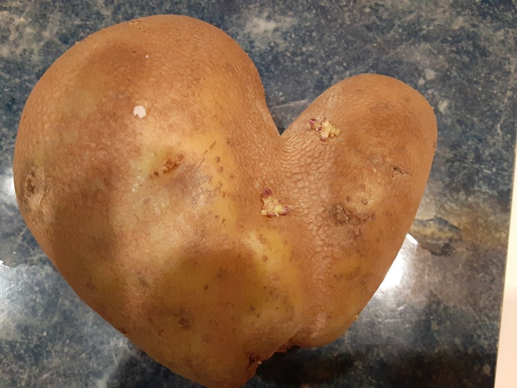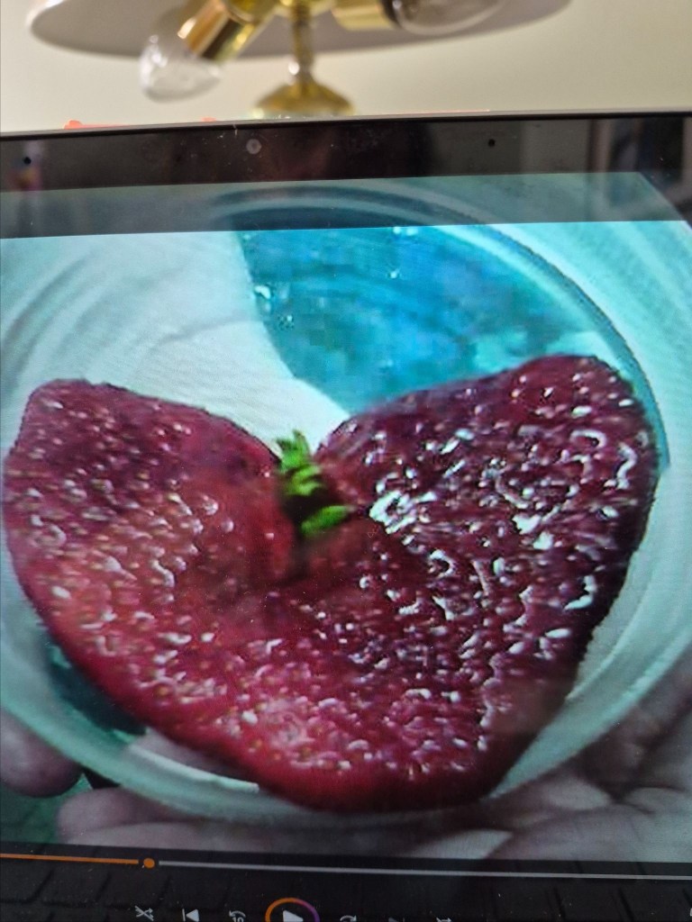 God has surprised me a few times as I noticed things in Nature. I once found a heart-shaped potato. Another almost heart-shape, opening in the clouds. And my favorite, a heart-shaped strawberry one of my students from many years ago showed me before she ate it for a snack. (Apologies for the poor photo. I had to take a picture of the picture since I couldn’t figure out how to save it from a video.)